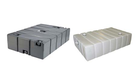 Holding Tanks consist of 250 and 300-gallon rotationally molded polyethylene. It is most often part of on-site office trailers, as well as for temporary waste storage in other locations. The low profile tank has dimensions of 6’ x 3’ 11 ½” x 18”.